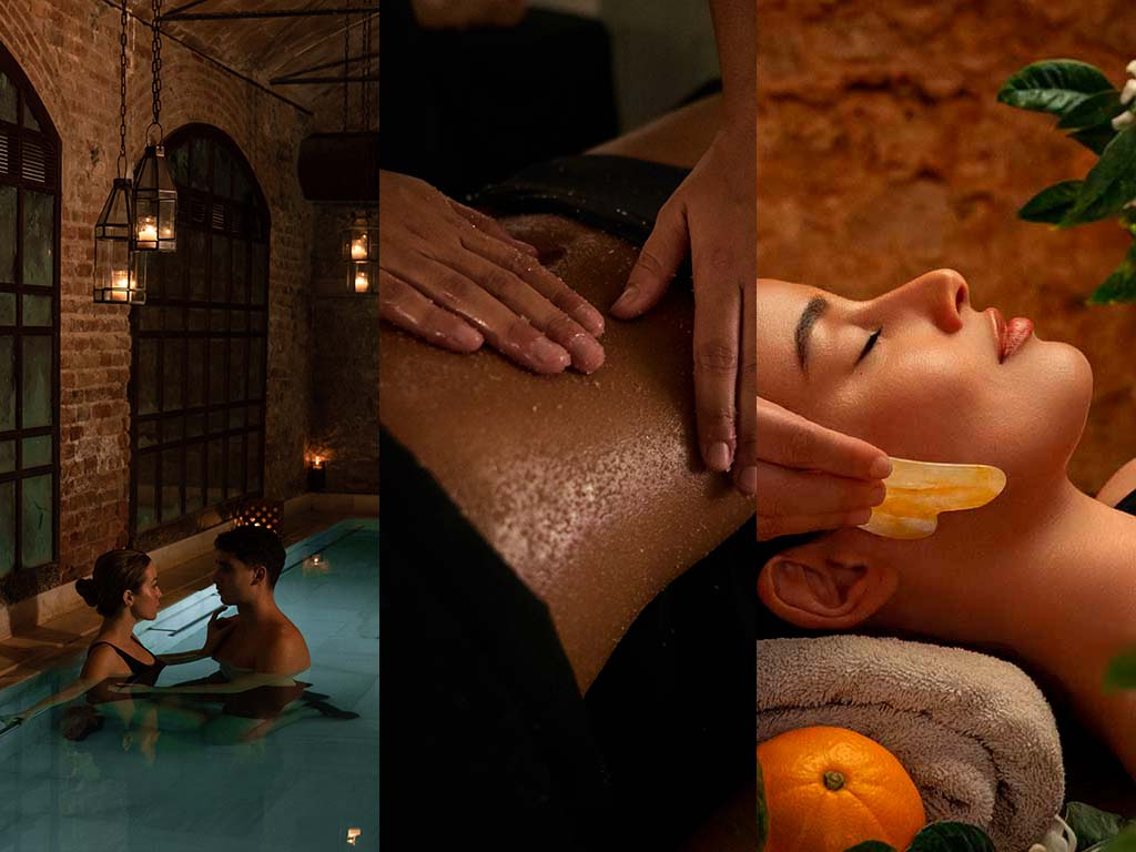 All our experiences include our thermal baths circuit through the Caldarium, a hot bath that helps release tension; the Frigidarium, a cold bath that invites renewal; the Tepidarium, a warm bath that promotes comfort; the Balneum, a bath of a thousand jets that soothes the mind; the Vaporium, a steam room with aromatherapy for purification; the outdoor warm bath, which encourages disconnection; the Saunarium, a dry sauna that helps cleanse; and the Flotarium, a salt bath that allows you to float and fully let go.