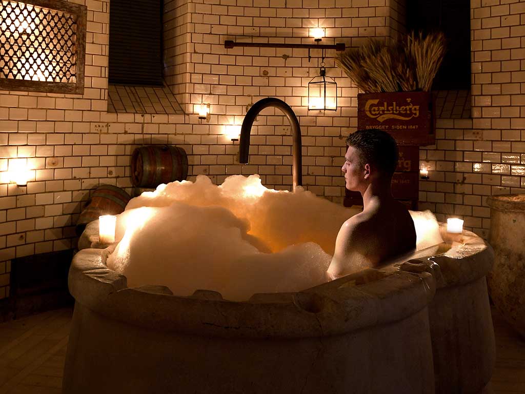 Enjoy a rich experience with a 30-minute beer soak, a 15-minute cranial massage, our thermal baths and a fine Carlsberg beer.