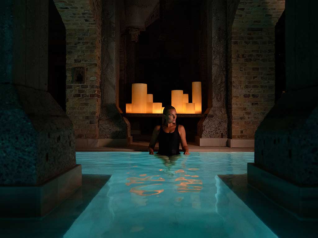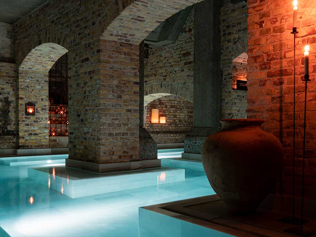 This rich experience will let you walk through our thermal baths at your own pace, with baths at different temperatures including the Caldarium (Hot Bath), the Frigidarium (Cold Bath), the Tepidarium (Warm Bath), the Balneum (Bath of a Thousand Jets), the Vaporium (A Steam Room with Aromatherapy), the Pediluvium (Foot Bath), and the Flotarium (Salt Bath), as well as a salt exfoliation area.