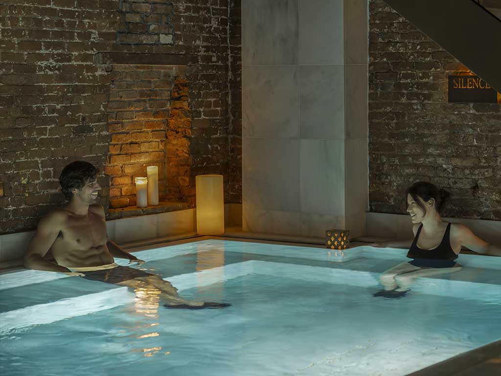 Lose yourselves in a journey of sensations in a historic building and the candlelight of hundreds of candles, discover the Caldarium (Hot Bath), the Frigidarium (Cold Bath), the Tepidarium (Warm Bath), the Balneum (Bath of a Thousand Jets), the Vaporium (A Steam Room with Aromatherapy), the Pediluvium (Foot Bath), and the Flotarium (Salt Bath), as well as a salt exfoliation area.