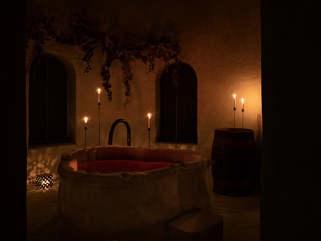 The flagship AIRE Experience includes 45 minutes in a private wine bath, a cranial massage with a hair mask, a 15-minute body exfoliation, and a 60-minute relaxing body massage that includes a face massage with cryo sticks and a thermal bath. It also includes a glass of wine and a selection of cheeses.