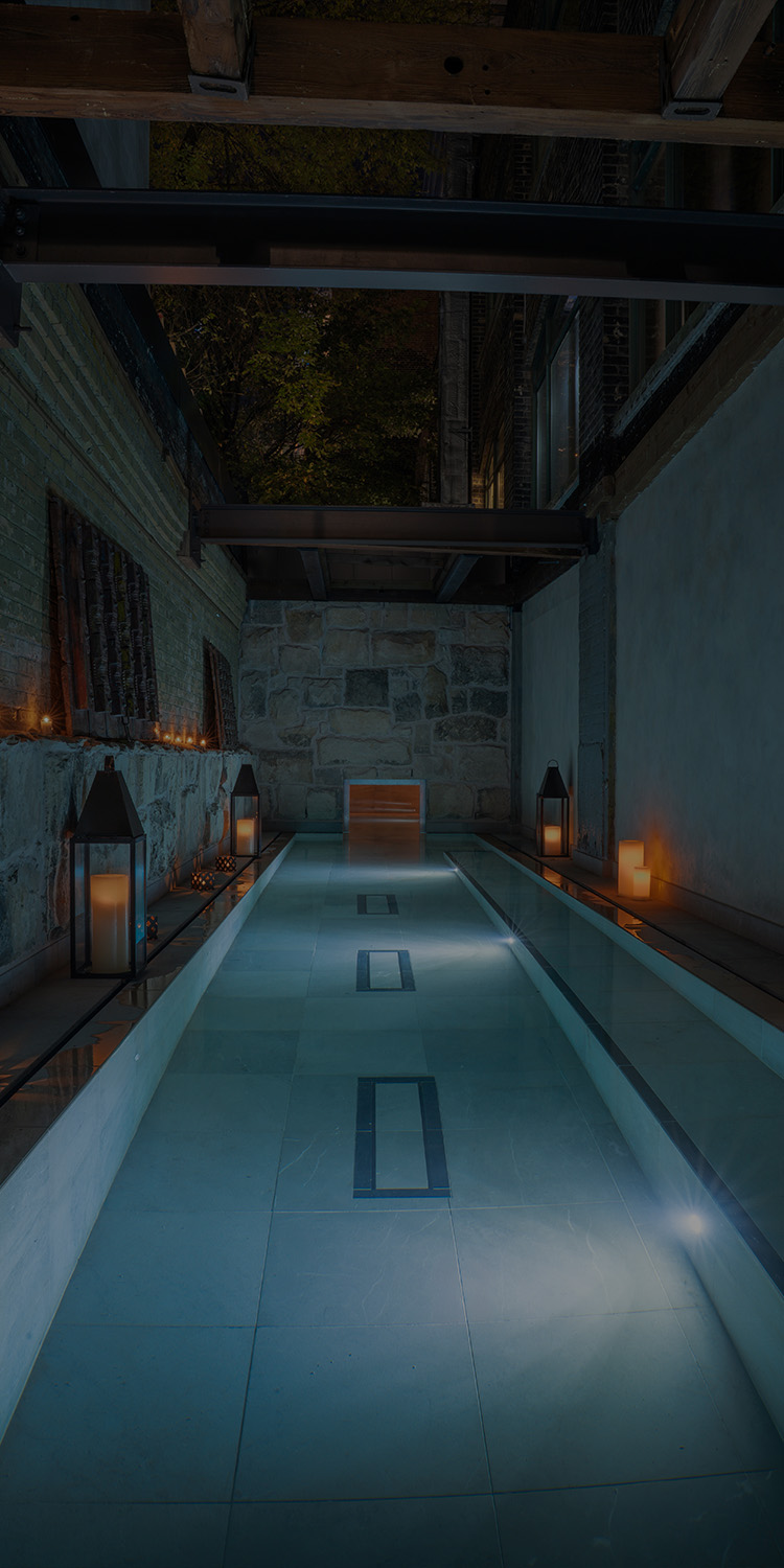 Amidst the timeless charm of Toronto’s Fashion District, AIRE finds its home in a historic Edwardian Classicism building, once the office and warehouse of the Copp Clark publishing company. Built in 1912 and later designated a heritage site, its original wood structure and towering pillars remain, preserving the character of its storied past that once held the art of printing and now embraces the art of relaxation. Honoring its literary and industrial past, the space is adorned with vintage books, printing presses which are subtle echoes of its history.