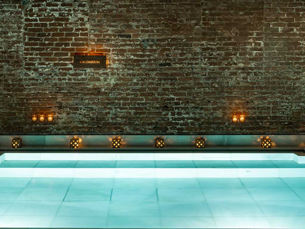 Immerse yourselves in our thermal baths including the Caldarium (Hot Bath), the Frigidarium (Cold Bath), the Tepidarium (Warm Bath), the Vaporium (Steam Room with Aromatherapy), the Saunarium, the Balneum (Two Baths of Thousand Jets), the magnificent Palestra (Outdoor Bath), the Flotarium (Salt Bath) and a salt exfoliation area.